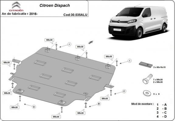 Aluminium skid plate for Citroen Dispach (2016-2026)