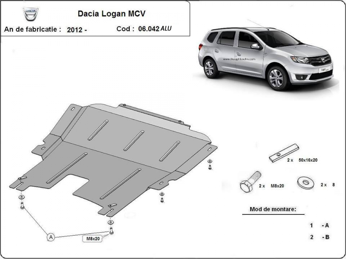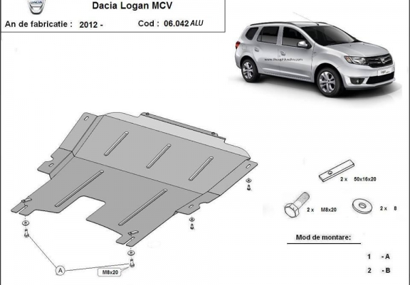 Aluminum skid plate for DACIA LOGAN MCV (2012-2020)
