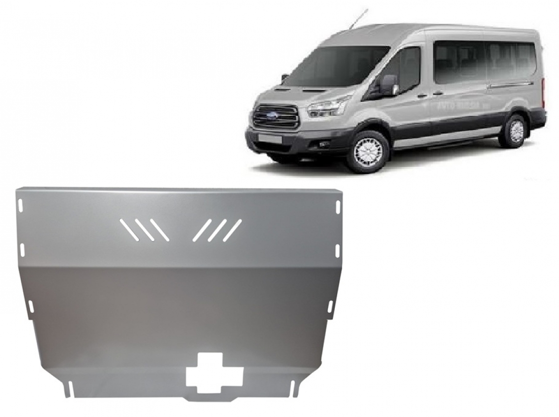 Skid plate for the protection of the: engine, gearbox, radiator, front bumper . The skid plate is new and fits perfectly for all versions of Ford Transit manufactured between 2020 and 2026. Made out of 3 mm thick Aluminium plate. The shields are made of aluminum, but the mounting brackets are made of steel. Screws, nuts, clips, all fastening accessories are included. All skid plates are powder coated to prevent corrosion. The exterior of the skid plate is provided with Aluminium reinforcements, which increases the resistance to impact. |