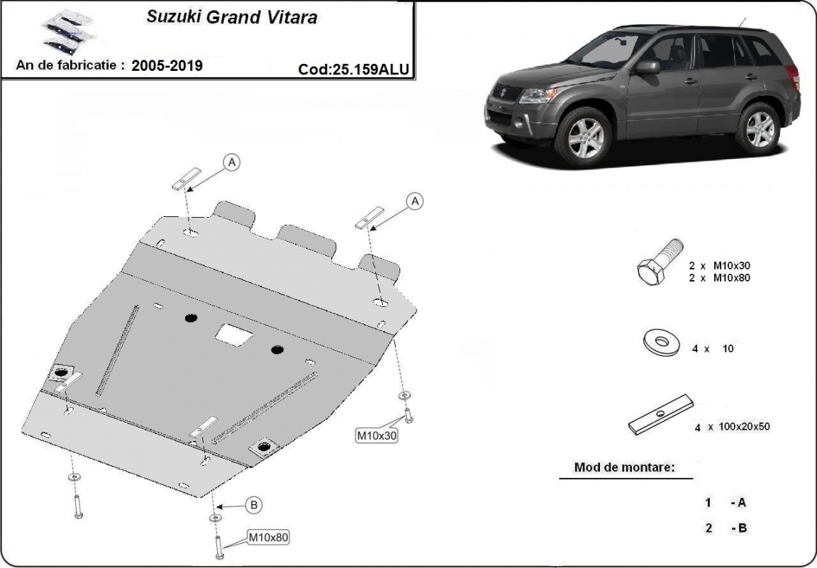 Aluminum skid plate for Suzuki Grand Vitara 2 (2005-2019)