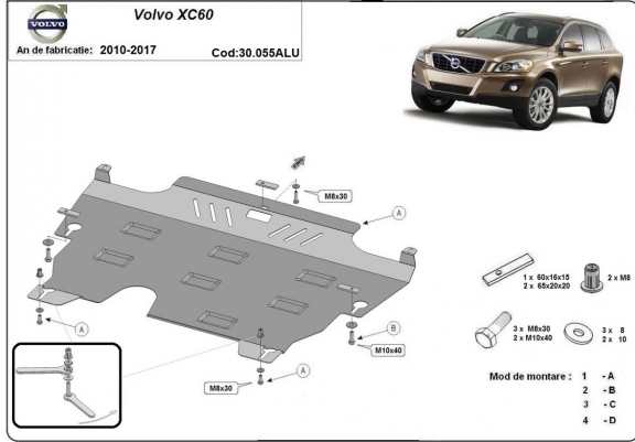 Aluminum skid plate for the protection of the engine and the gearbox for Volvo XC60 (2010-2017)