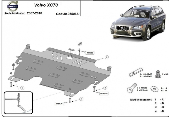 Aluminum skid plate for the protection of the engine and the gearbox for Volvo XC70 (2007-2016)