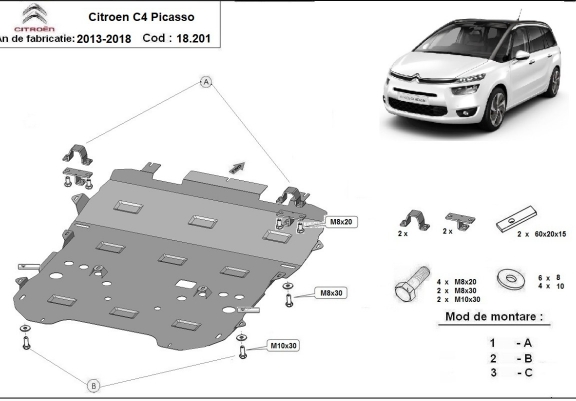 Steel skid plate for Citroen C4 Picasso (2013-2018)