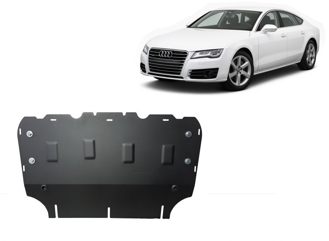 Skid plate for the protection of the: engine, radiator . The skid plate is new and fits perfectly for the Audi A7, with the following engine/drive versions: - manufactured between 2011 and 2018. Made out of 2 mm thick Steel plate. Screws, nuts, clips, all fastening accessories are included. All skid plates are powder coated to prevent corrosion. The exterior of the skid plate is provided with Steel reinforcements, which increases the resistance to impact. |
