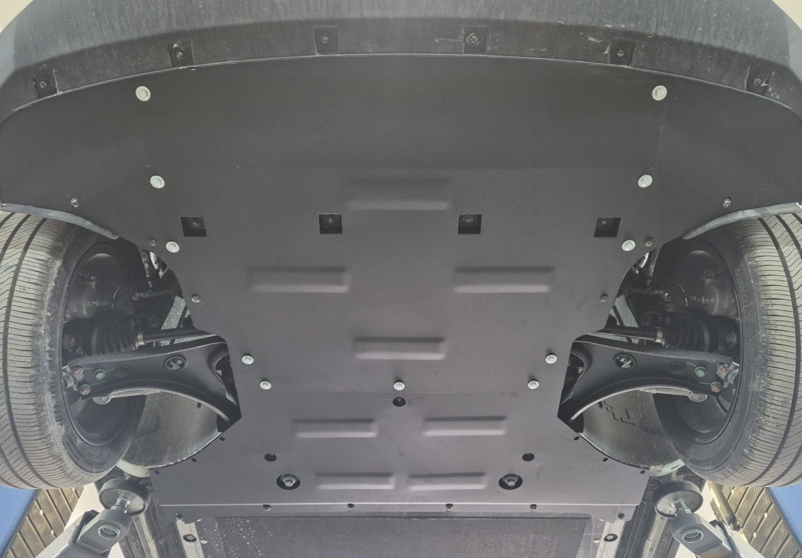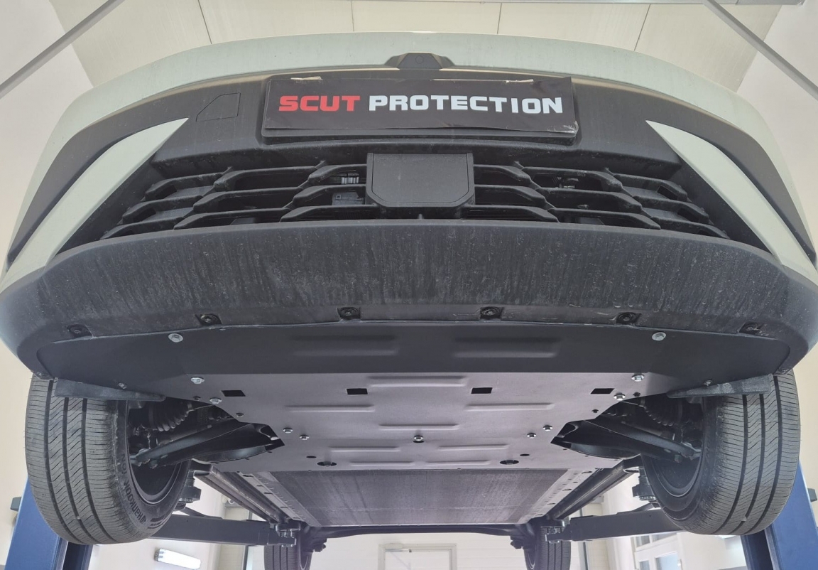 Skid plate for the protection of the: engine, front bumper, gearbox, radiator, Front differential . The skid plate is new and fits perfectly for all versions of BYD Dolphin Surf manufactured between 2025 and 2026. Made out of 2 mm thick Steel plate. Screws, nuts, clips, all fastening accessories are included. All skid plates are powder coated to prevent corrosion. The exterior of the skid plate is provided with Steel reinforcements, which increases the resistance to impact. |