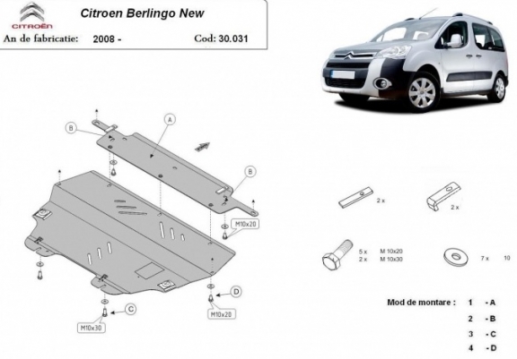 Steel skid plate for Citroen Berlingo (2008-2018)