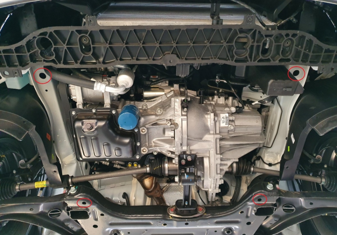 | Every car has factory-made screw holes for fitting the skid plate, making mounting very easy . You can either do it yourself or at any auto-service point. |