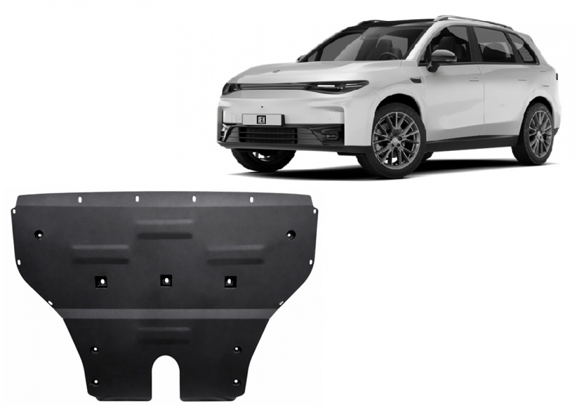 Skid plate for the protection of the: engine, gearbox . The skid plate is new and fits perfectly for all versions of Leapmotor C10 manufactured between 2024 and 2026. Made out of 2 mm thick Steel plate. Screws, nuts, clips, all fastening accessories are included. All skid plates are powder coated to prevent corrosion. The exterior of the skid plate is provided with Steel reinforcements, which increases the resistance to impact. |