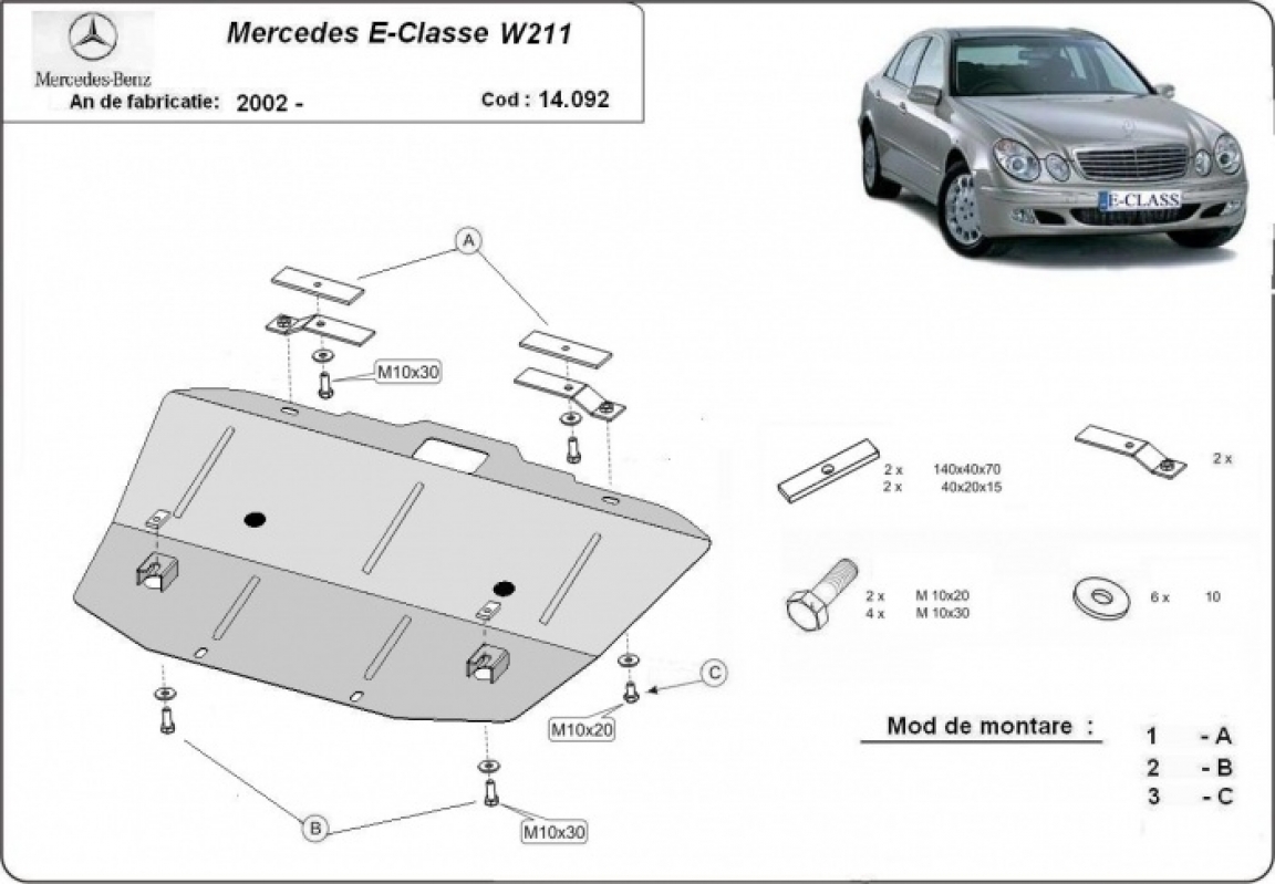 Steel skid plate for Mercedes E-Classe W211 (2002-2008)