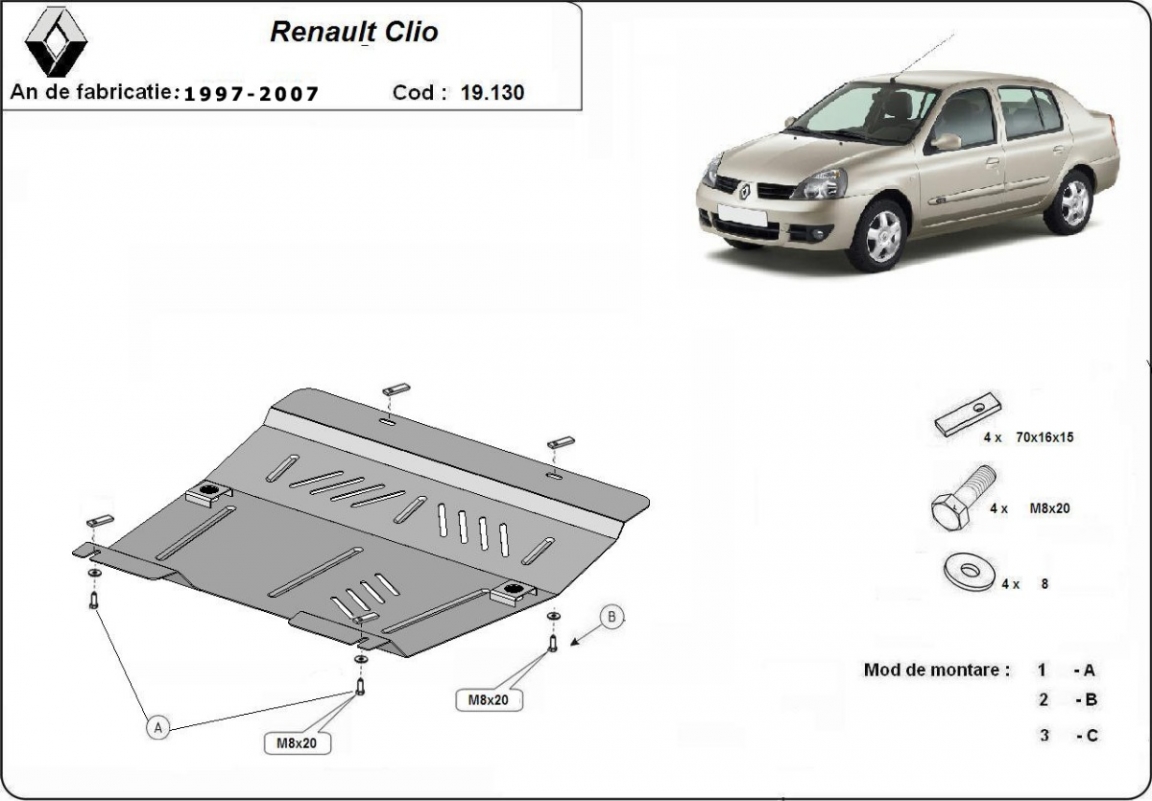 Steel skid plate for Renault Clio 2