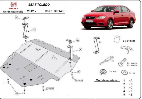 Steel skid plate for Seat Toledo 4 (2012-2019)