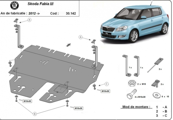 Steel skid plate for Skoda Fabia 3