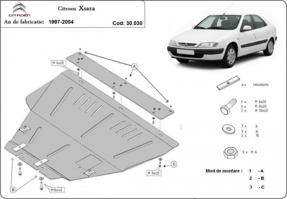 Steel skid plate for the protection of the engine and the gearbox for Citroen Xsara