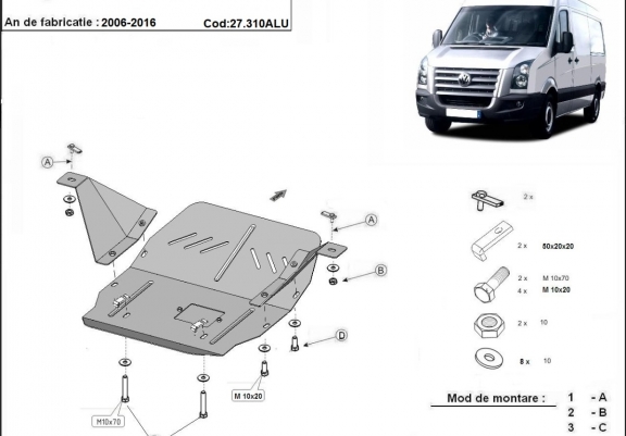Aluminum skid plate for the protection of the engine and the gearbox for Volkswagen Crafter (2006-2016)