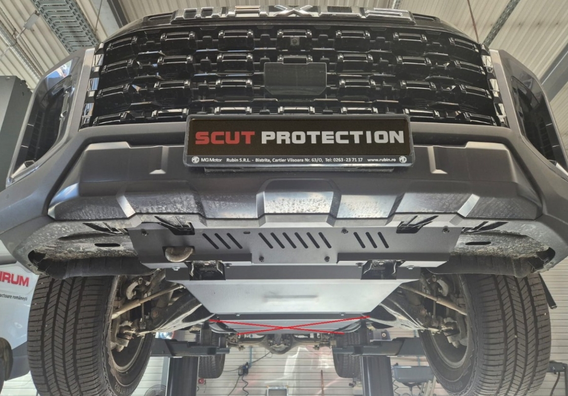 Skid plate for the protection of the: engine, radiator . The skid plate is new and fits perfectly for all versions of Maxus T60 Max manufactured between 2025 and 2026. Made out of 3 mm thick Steel plate. Screws, nuts, clips, all fastening accessories are included. All skid plates are powder coated to prevent corrosion. The exterior of the skid plate is provided with Steel reinforcements, which increases the resistance to impact. |