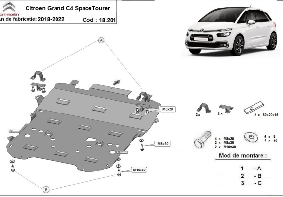 Steel skid plate for Citroen Grand C4 SpaceTourer (2018-2020)