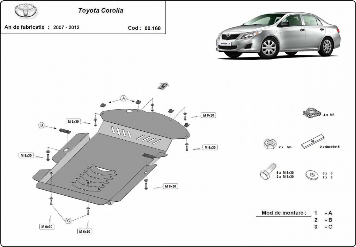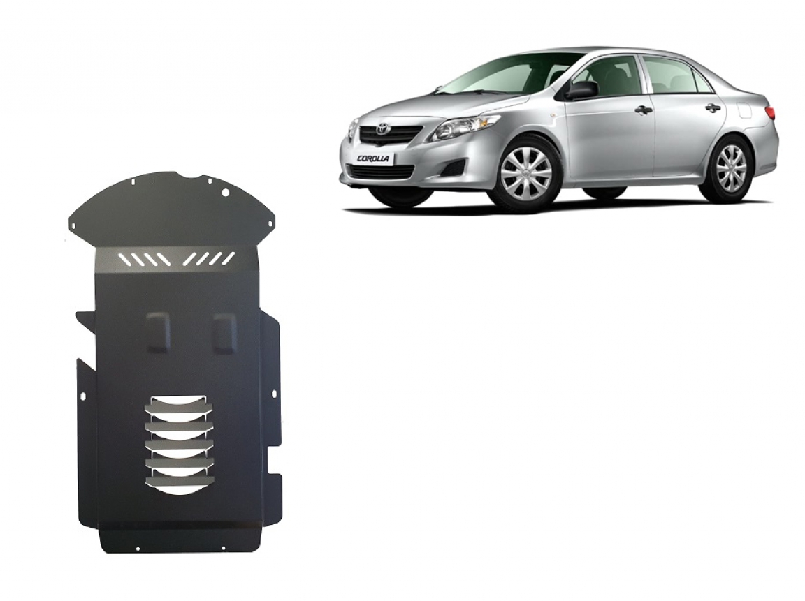 Skid plate for the protection of the: Catalytic converter . The skid plate is new and fits perfectly for all versions of Toyota Corolla manufactured between 2007 and 2012. Made out of 2 mm thick Steel plate. Screws, nuts, clips, all fastening accessories are included. All skid plates are powder coated to prevent corrosion. The exterior of the skid plate is provided with Steel reinforcements, which increases the resistance to impact. |