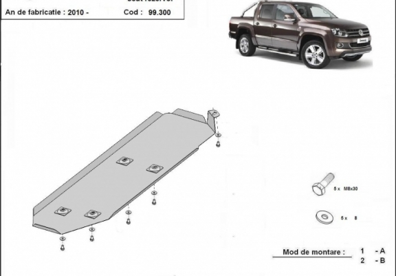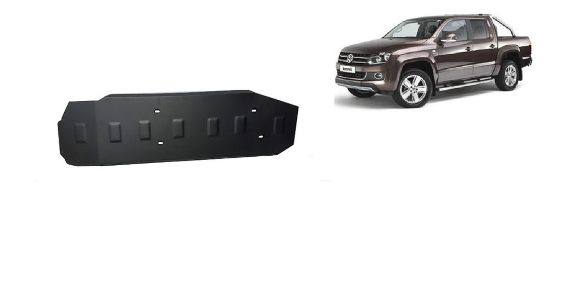 Skid plate for the protection of the: fuel tank . The skid plate is new and fits perfectly for all versions of Volkswagen Amarok manufactured between 2010 and 2026. Made out of 2 mm thick Steel plate. Screws, nuts, clips, all fastening accessories are included. All skid plates are powder coated to prevent corrosion. The exterior of the skid plate is provided with Steel reinforcements, which increases the resistance to impact. |