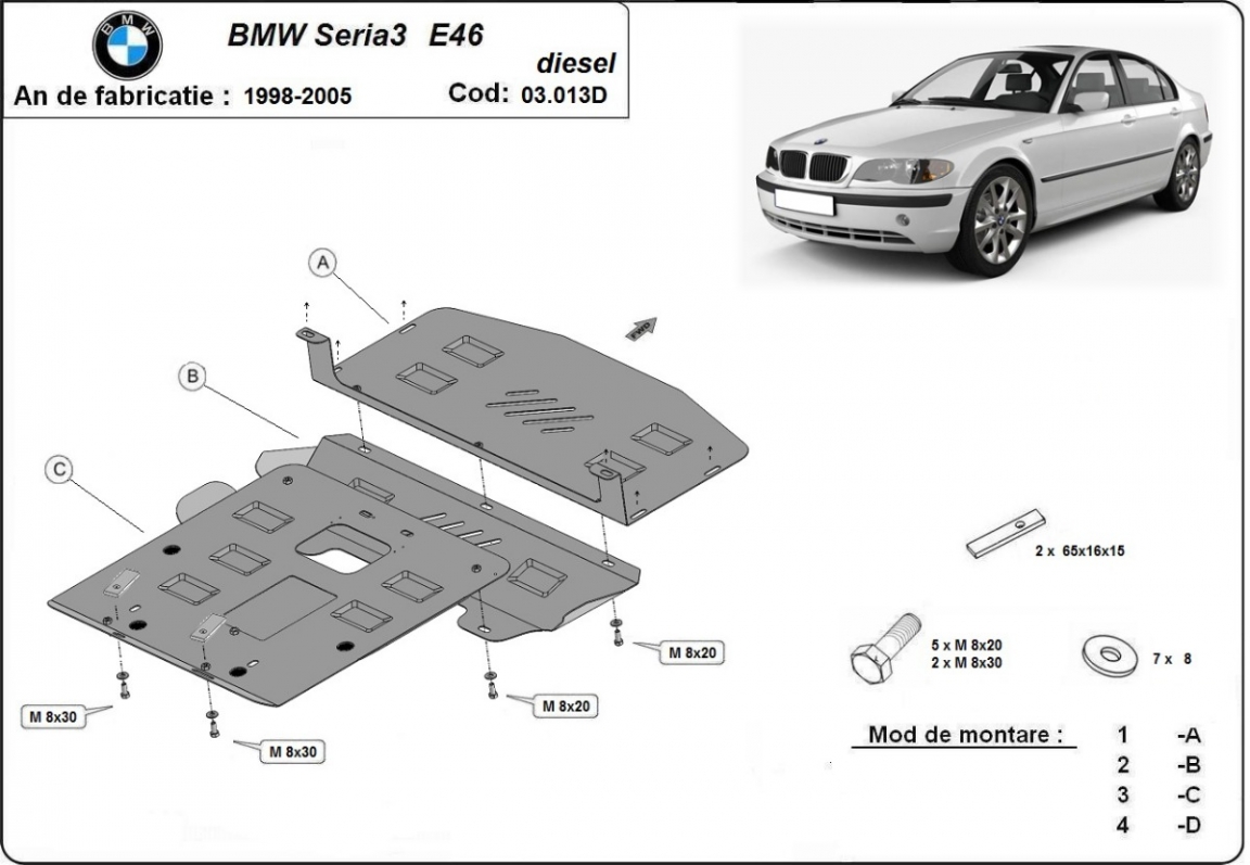 Steel skid plate for BMW Seria 3 E46 - Diesel (1998-2005)