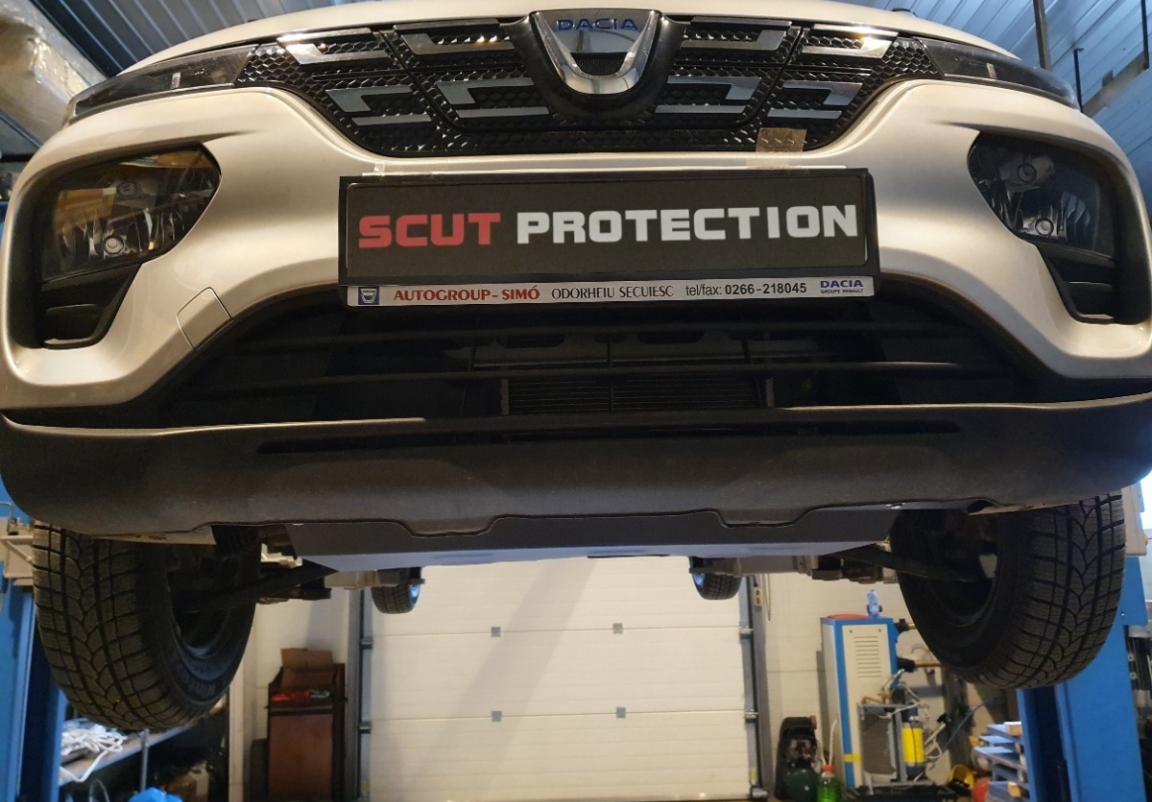 Skid plate for the protection of the: engine, gearbox . The skid plate is new and fits perfectly for all versions of Dacia Spring manufactured between 2021 and 2026. Made out of 2 mm thick Steel plate. Screws, nuts, clips, all fastening accessories are included. All skid plates are powder coated to prevent corrosion. The exterior of the skid plate is provided with Steel reinforcements, which increases the resistance to impact. |