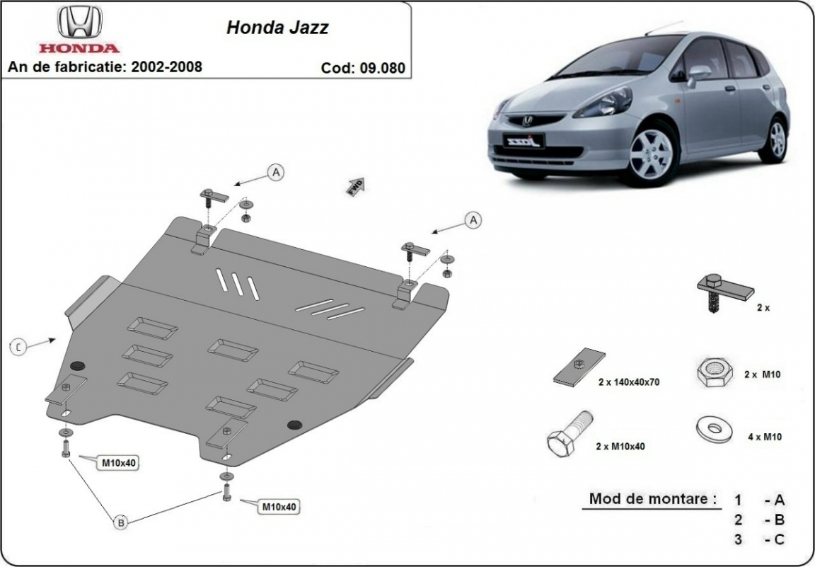 Steel skid plate for Honda Jazz (2002-2008)