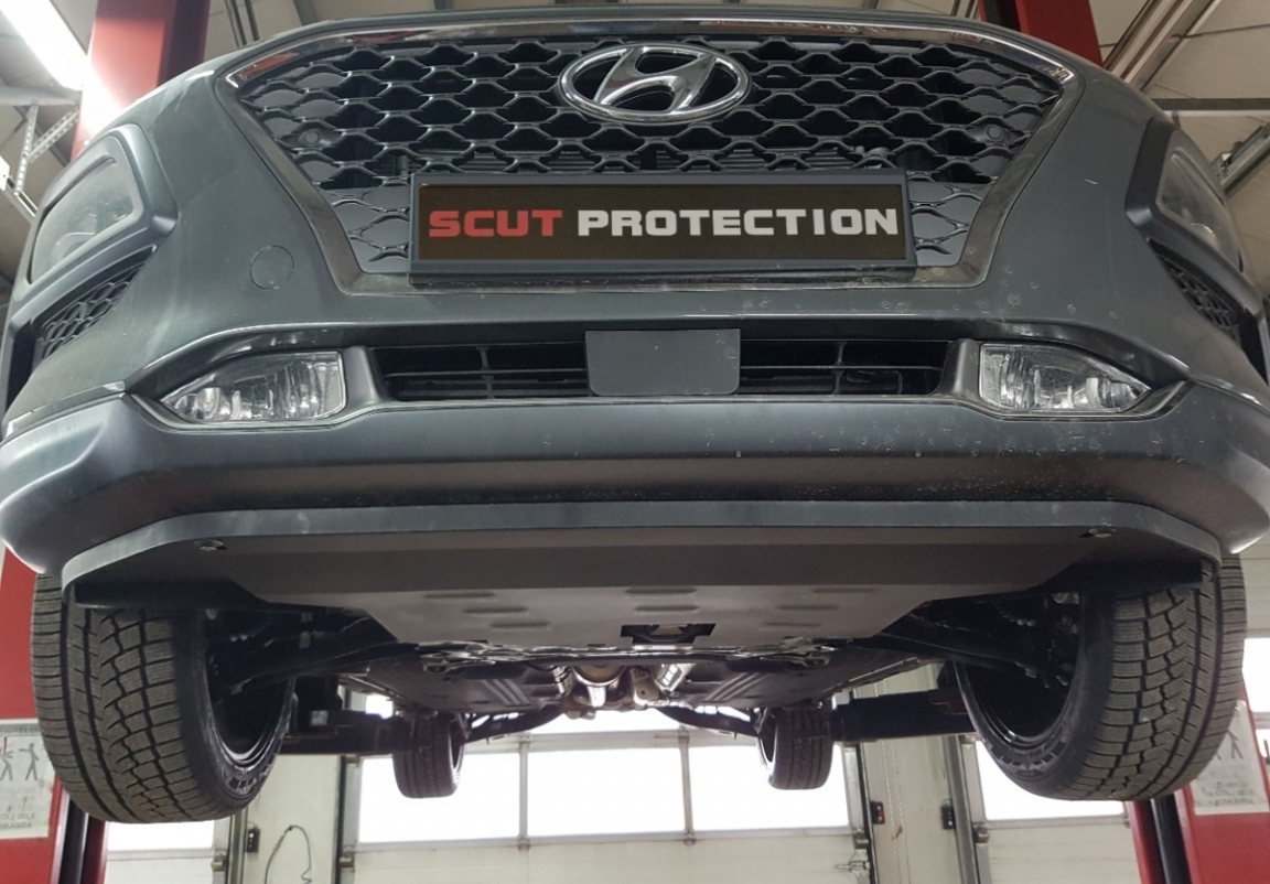 Skid plate for the protection of the: engine, gearbox, radiator, front bumper . The skid plate is new and fits perfectly for all versions of Hyundai Kona manufactured between 2017 and 2023. Made out of 2 mm thick Steel plate. Screws, nuts, clips, all fastening accessories are included. All skid plates are powder coated to prevent corrosion. The exterior of the skid plate is provided with Steel reinforcements, which increases the resistance to impact. |