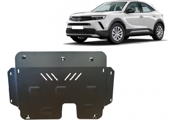 Skid plate for the protection of the: engine, gearbox, radiator . The skid plate is new and fits perfectly for all versions of Opel Mokka manufactured between 2019 and 2026. Made out of 2 mm thick Steel plate. Screws, nuts, clips, all fastening accessories are included. All skid plates are powder coated to prevent corrosion. The exterior of the skid plate is provided with Steel reinforcements, which increases the resistance to impact. |
