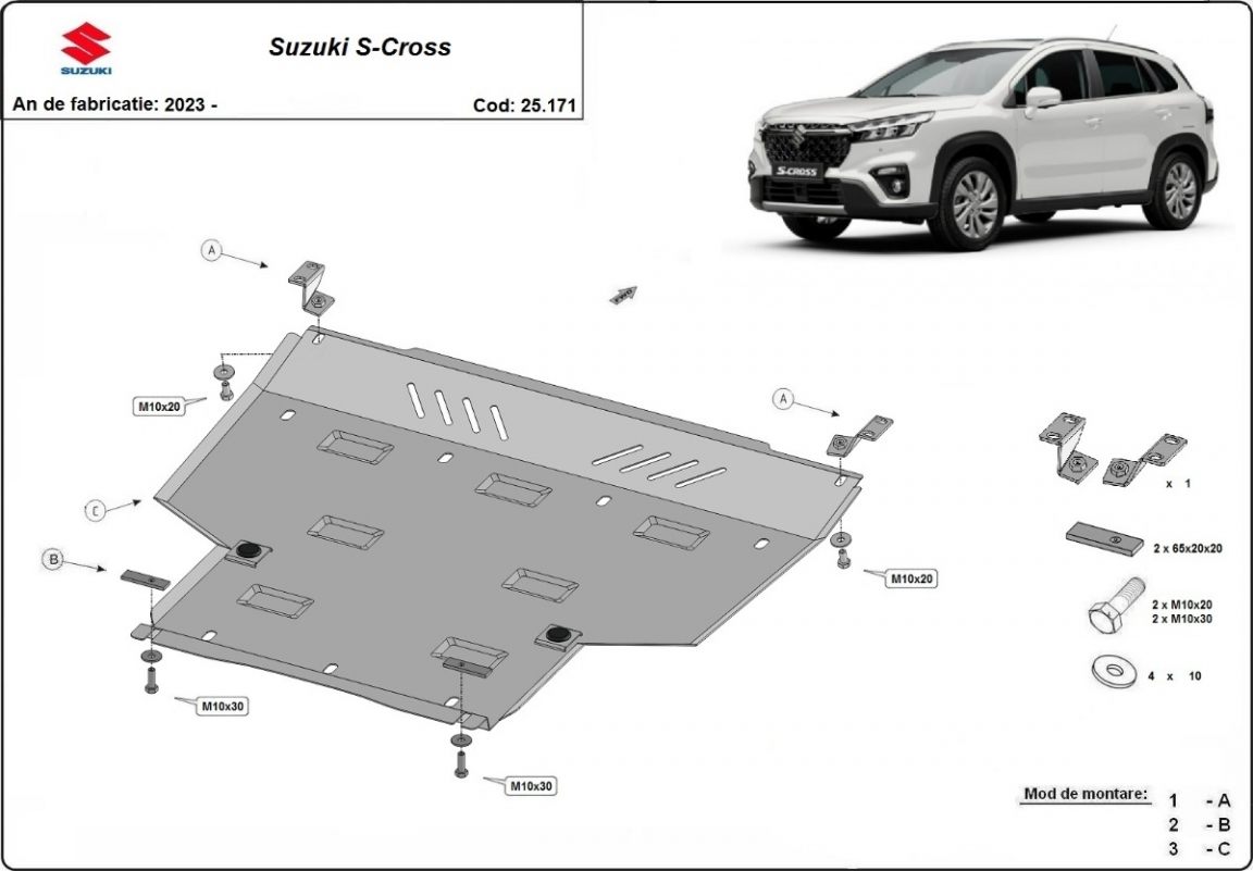 Steel skid plate for the protection of the engine and the gearbox for Suzuki S-Cross (2023-2026)